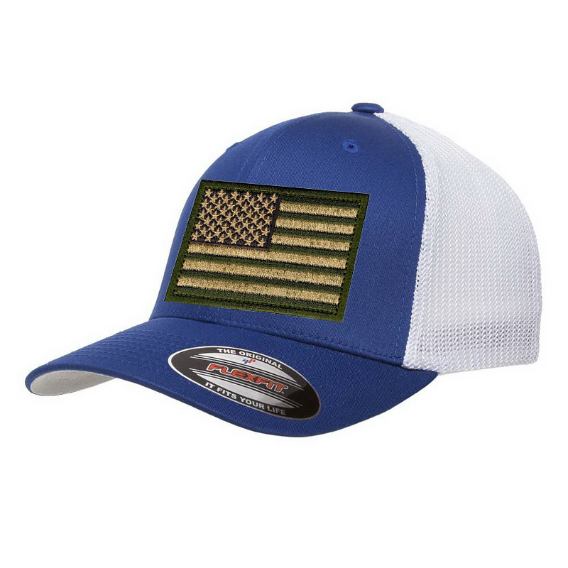 Royal Blue American Flag FlexFit Trucker Hat